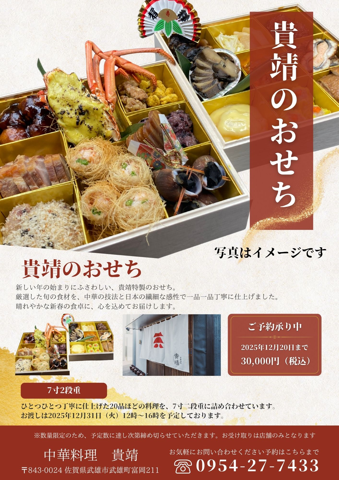 貴靖(たかやす)特製のおせち料理をご用意いたしました。