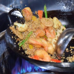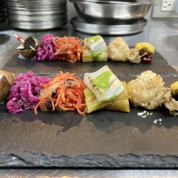 - 7 dishes, including wagyu beef, live shrimp, and live abalone