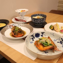 Includes dishes such as boiled whole shark fin from Kesennuma, live Ise lobster cuisine, live abalone cuisine, Japanese beef, etc.